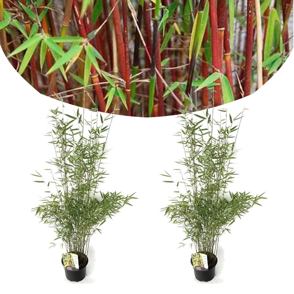 De Fargesia Red Dragon, ook wel bekend als de Rode Drakenbamboe, is een prachtige bamboesoort met levendige rode stengels en frisgroene bladeren. Deze exclusieve en niet-invasieve Fargesia is een ware blikvanger in de tuin. Deze bamboevariëteit behoort tot de niet-woekerende soorten, wat betekent dat hij zich niet agressief verspreidt en de omliggende gebieden niet overwoekert. De naam ‘Red Dragon’ is afgeleid van de karakteristieke rode kleur van de stengels. Deze heldere, dieprode tint vervaagt geleidelijk naar een meer subtiele kleur naarmate de stengels ouder worden. Fargesia Red Dragon is daarnaast zeer winterhard tot -20 graden Celsius en groenblijvend. De plant heeft een compacte groeivorm en bereikt een hoogte van ongeveer 2 tot 3 meter, waardoor hij perfect is voor gebruik als haag, privacy afscheiding of als solitaire plant.