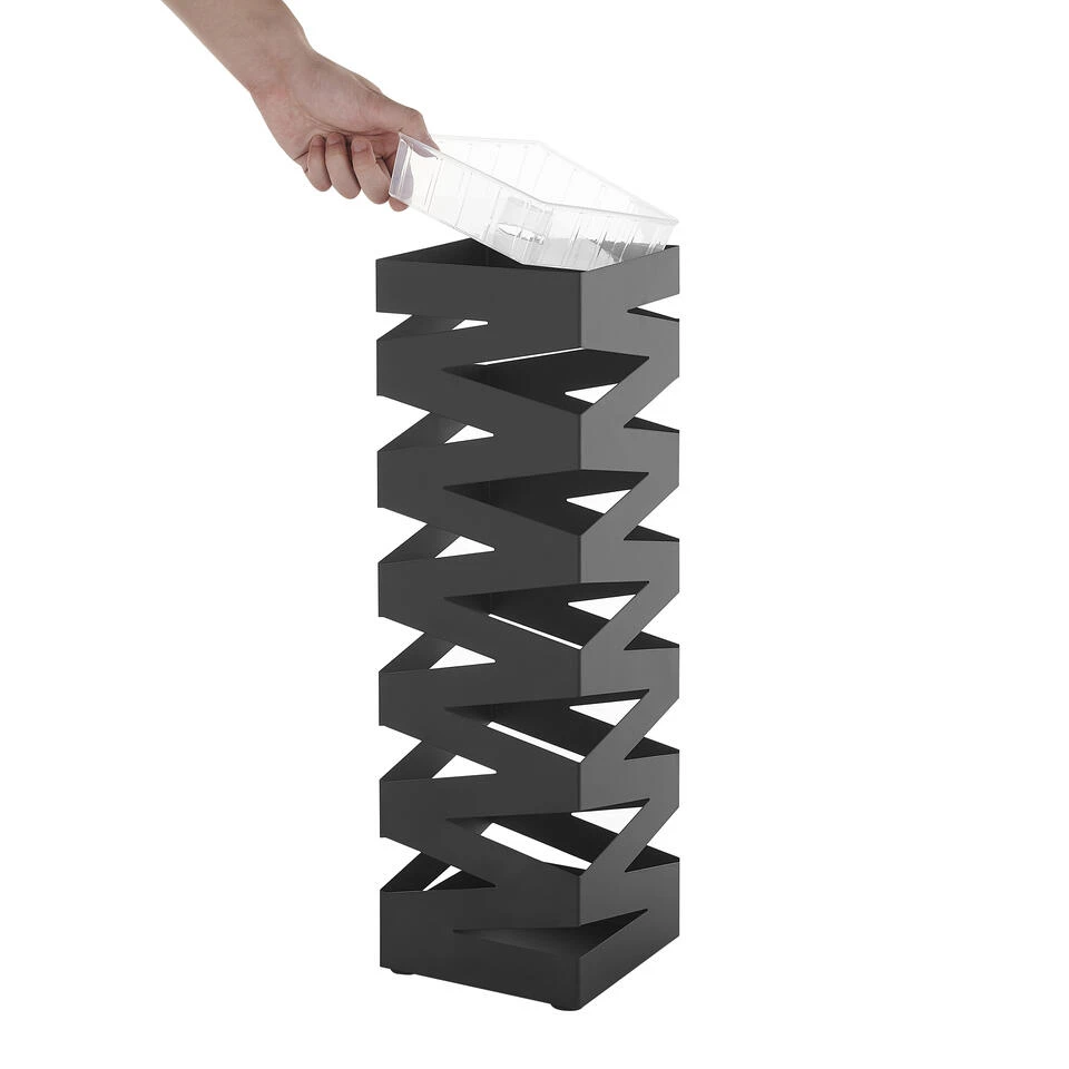 Deze rechthoekige, witte paraplubak combineert gebruiksgemak met een tof design. Door gebruik te maken van een plastic opvangbakje onderaan de paraplubak zal je vloer netjes blijven. Om krassen op de vloer tegen te gaan, werden eveneens 4 beschermingspads onderaan de parapluhouder voorzien.