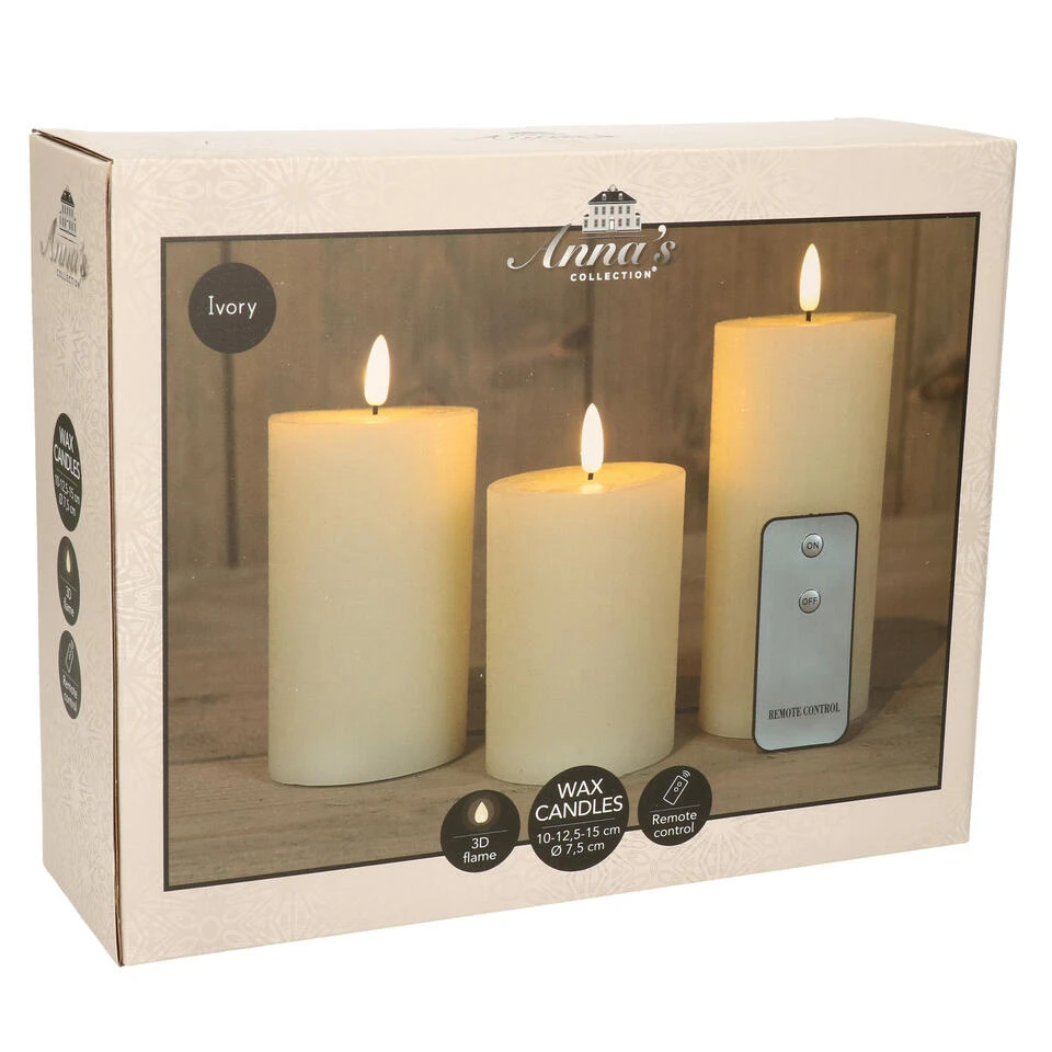 Anna’s Collection LED Stompkaarsen Met Afstandsbediening – 3x – Ivoor