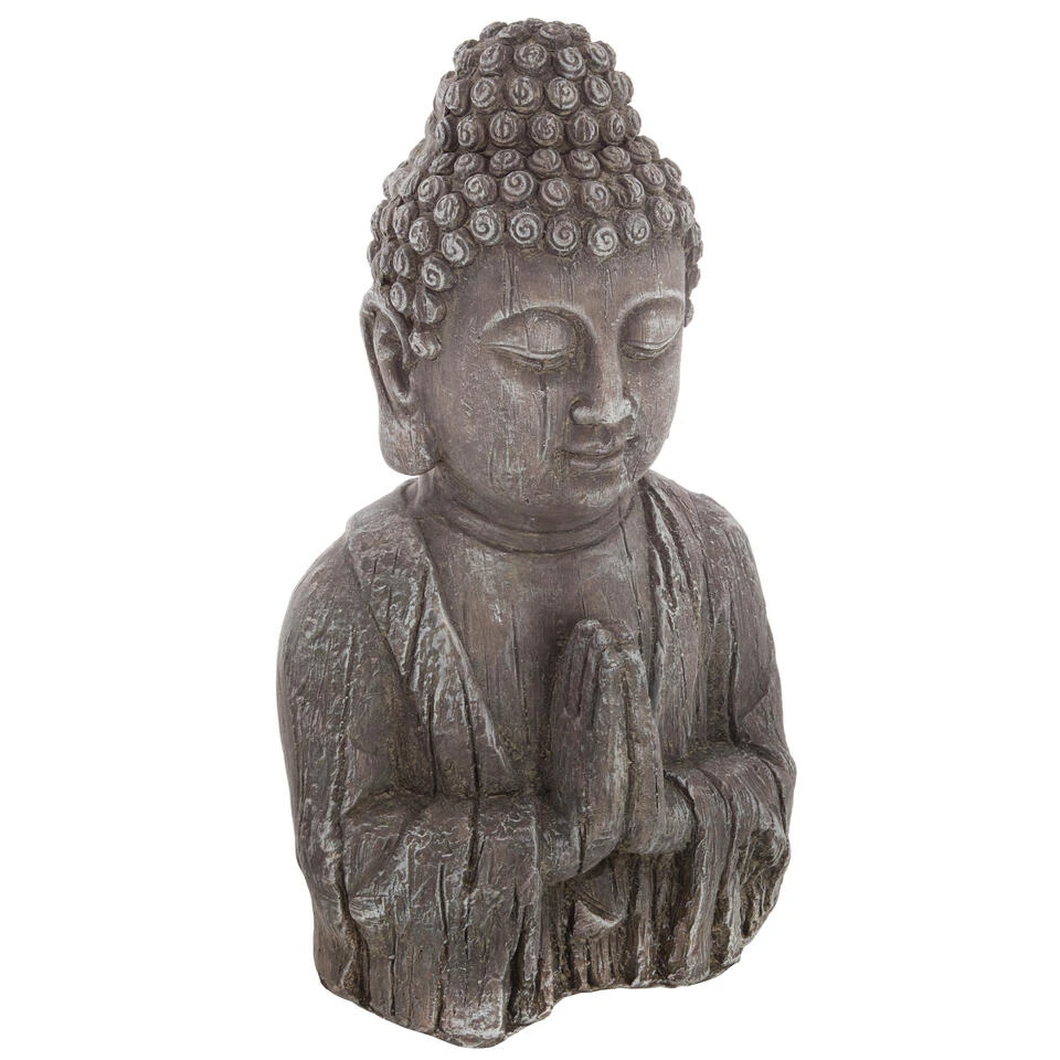 Boeddha decoratie beeld zittend/biddend voor huis of tuin gemaakt van kunststeen(magnesium oxide) wat op oud hout lijkt van maar liefst ongeveer 50 cm en geschikt voor binnen en buiten. Dit boeddha beeld is past goed in elke tuin/interieur en straalt rust en beheersing uit. U wordt er rustig/relaxed van als u er naar kijkt. Boeddha woon/tuinaccessoires beelden zijn ook zeer geschikt als cadeau.