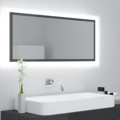 VidaXL Badkamerspiegel LED 100×8,5×37 Cm Acryl Hoogglans Grijs
