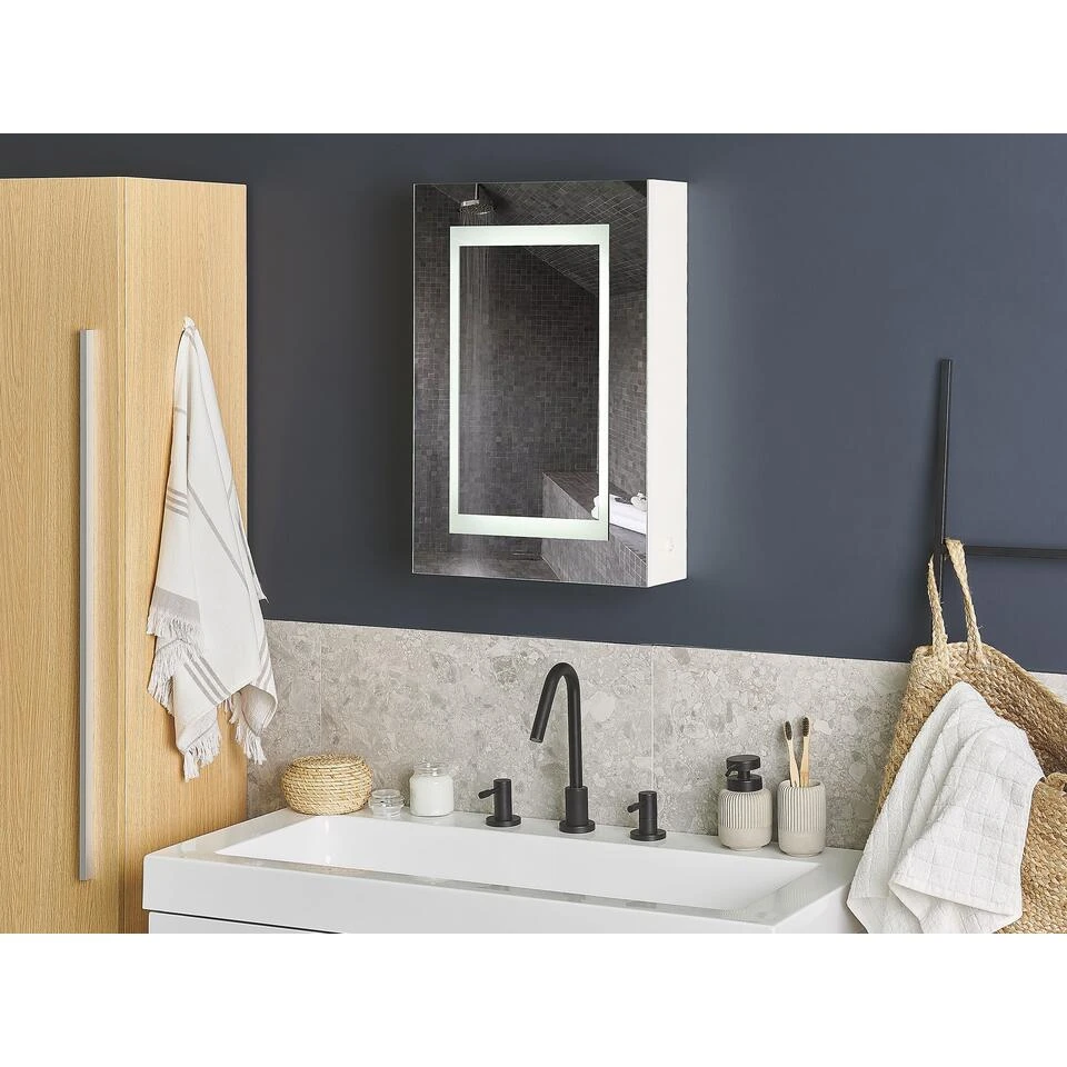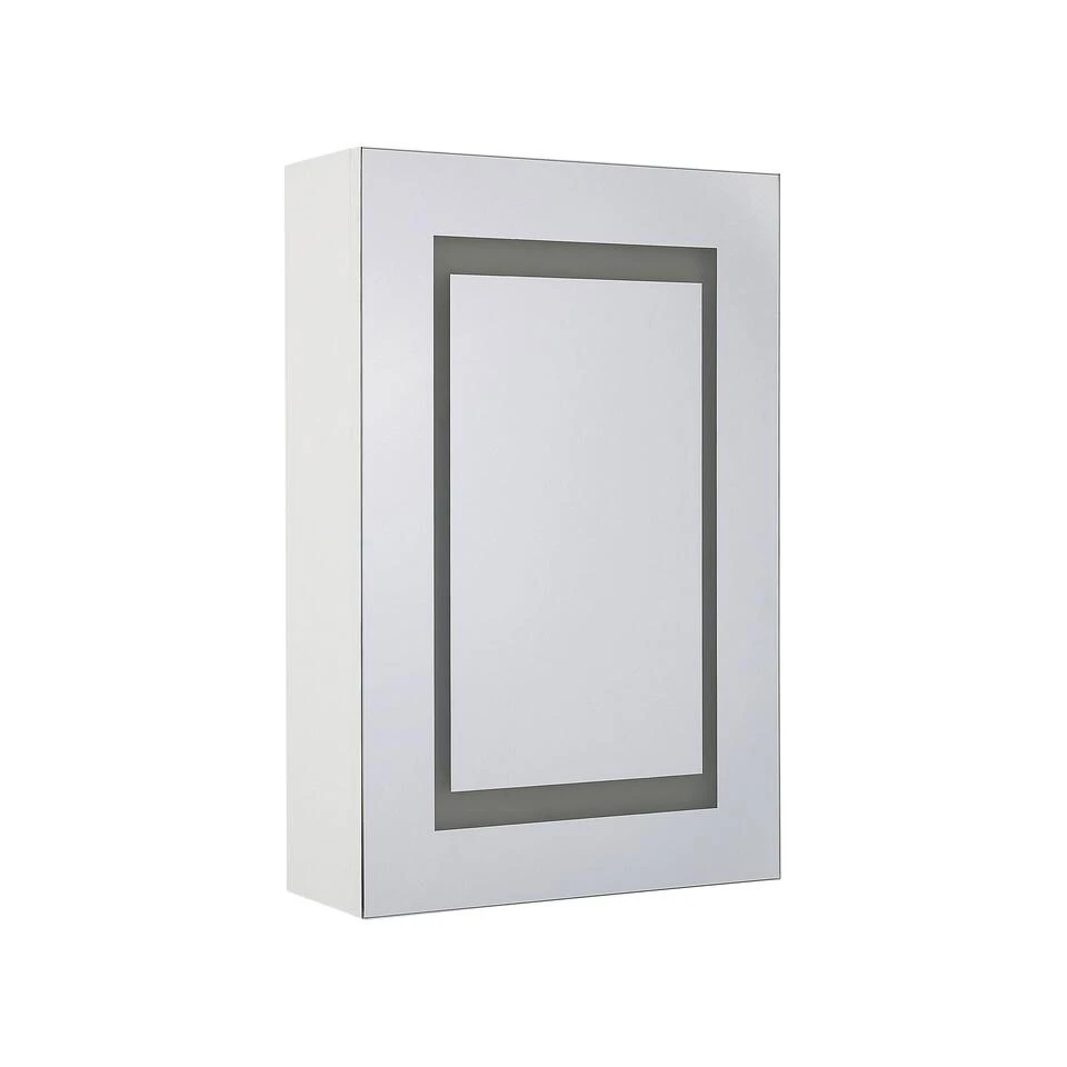 Spiegelkast met LED-verlichting voor de badkamer. Dit sfeervolle badkamermeubel heeft een eenvoudig, frameloos design en een geïntegreerde, energiebesparende ledstrip. De spiegelkast kenmerkt zich door zijn hoogwaardige afwerking en is bij uitstek geschikt voor vochtige ruimtes en toiletten. Dankzij de geprefabriceerde gaten in het bovenkastje is de spiegel snel te plaatsen en wordt het meteen een blikvanger in je badkamer. De schakelaar aan de zijkant maakt het in- en uitschakelen eenvoudig.