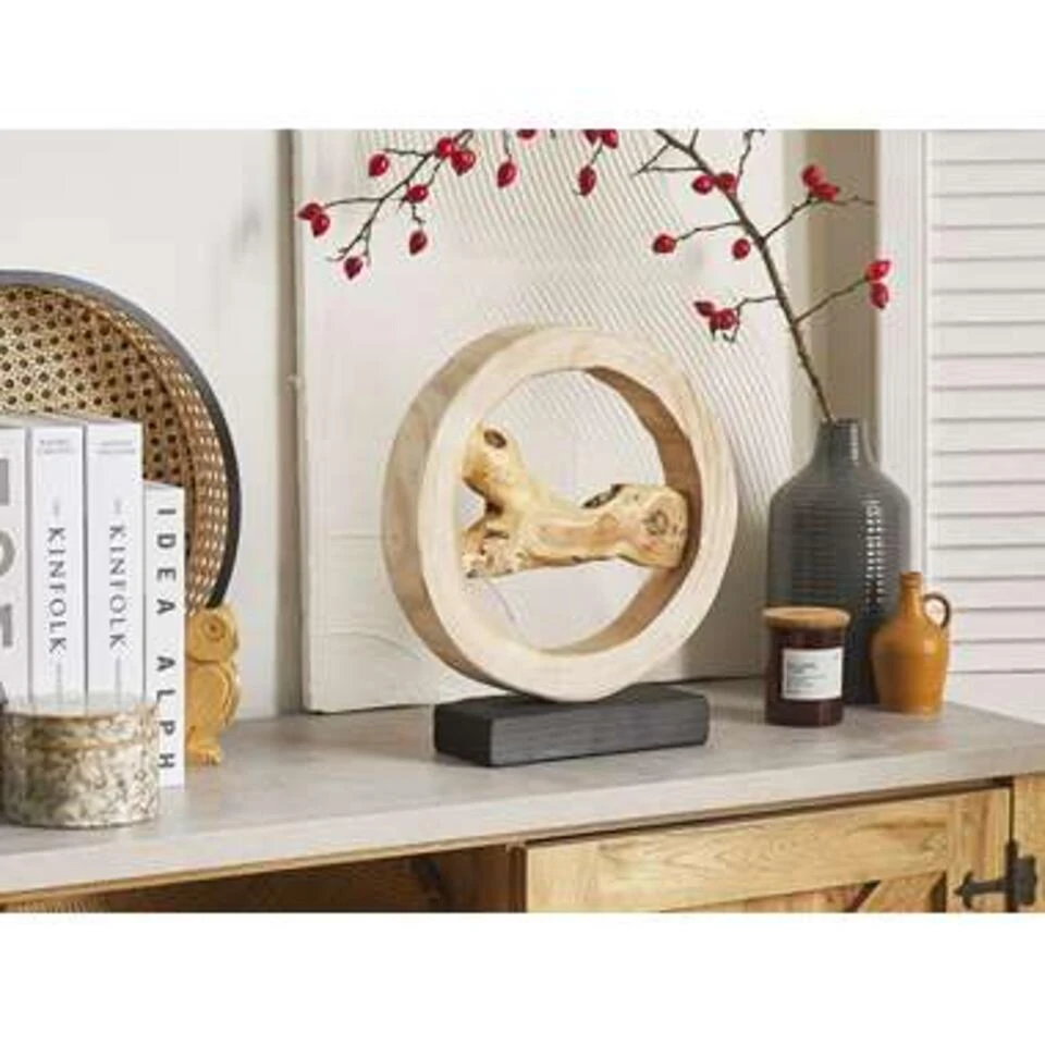 Abstract, handegemaakt decofiguur van hout. Dit decoratieve beeld met een abstracte vorm zal een intrigerend element in jouw kamer brengen. De natuurlijke afwerking past bijzonder goed bij boho en scandinavische interieurs. Elk stuk is een uniek item, omdat het handgemaakt is. Het is een waar kunstwerk dat je met trots kan laten zien in het middelpunt van je interieur.