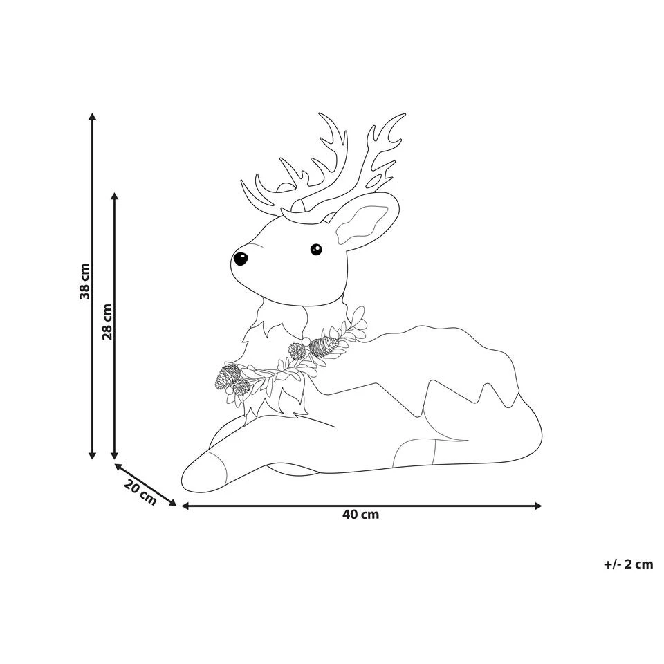 Decoratief Kerstbeeldje. Richt je huis in voor kerst en breng versieringen aan die een echte kerstsfeer creëren. Dit beeldje in de vorm van een rendier kan zowel op een dressoir als op de vloer geplaatst worden, vooral naast een kerstboom. Het beeld is bedekt met wit nepbont voor een realistisch effect. De tinten groen en rood op de geruite sjaal rond de nek van het dier verwijzen naar het kleurenschema van de kerstperiode en het glinsterende gewei zal perfect passen bij andere glanzende decoratie.