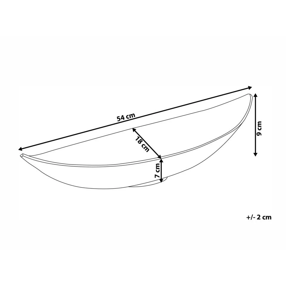 Slanke decoratieve schaal. Deze slanke en minimalistische schaal is een geweldig middelpunt voor elke tafel. De schaal is gemaakt van lichtgewicht aluminium en is voorzien van een gouden verflaag die het een verfijnde, elegante uitstraling geeft. Of je hem nu gebruikt om je favoriete accessoires uit te stallen of om alledaagse benodigdheden zoals sleutels in op te bergen, de schaal is in staat om elke ruimte te verfraaien met een glamoureuze touch