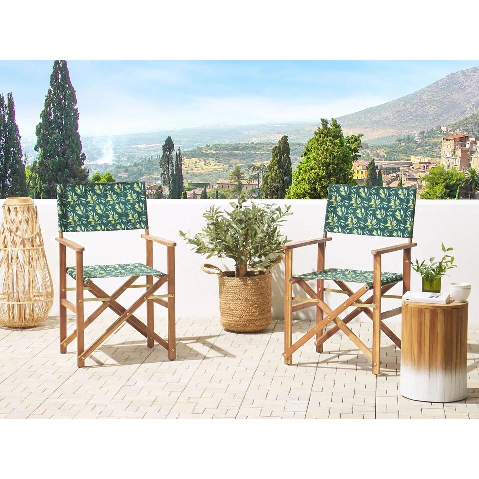 Comfortabele strandstoelen van acaciahout met twee extra hoezen. Deze strandstoel is ontworpen in een zeer traditionele stijl. De strandstoel is een prachtige aanvulling op je tuinmeubilair. De praktische ligstoel is opvouwbaar, gemakkelijk te vervoeren en niet alleen te gebruiken op je terras, maar ook tijdens een dagje strand of een picknick. De slijtvaste bekleding van de ligstoel is gemaakt van polyester. De ligstoel heeft een drievoudig-instelbare rugleuning wat altijd zorgt voor een ontspannen houding. Het frame van de strandstoel is gemaakt van donker, geolied acaciahout en is daarmee stevig en zal je jarenlang plezier geven. De set wordt geleverd met twee hoezen in solide kleur en twee extra hoezen in trendy olijf motief.