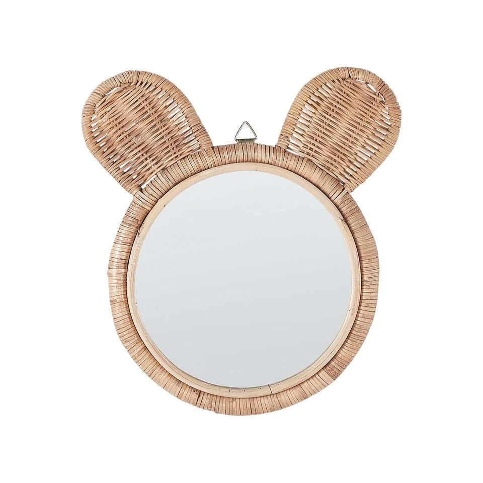 Decoratieve spiegel met beren oren. Ben je op zoek naar een spiegel waar je kinderen gek op zullen zijn, dan is deze een must-have. Door zijn schattige berenoren zullen je kinderen elke keer lachen als ze naar zichzelf kijken in de spiegel. Het handgeweven frame is gemaakt van natuurlijk rotan en heeft een haakje om gemakkelijk op te hangen.