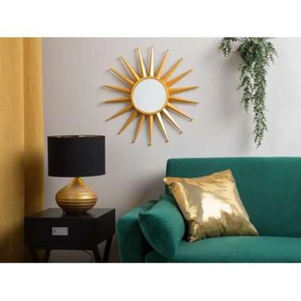 muurspiegel met gouden zonnestralen. Fleur elk decor op met het betoverende uiterlijk van deze ronde spiegel. Het gedurfde ontwerp van het ronde frame werkt goed met zowel vintage als moderne interieurs. Hang hem in je slaapkamer als een make-upspiegel of monteer het in een woonkamer om meer licht te brengen.