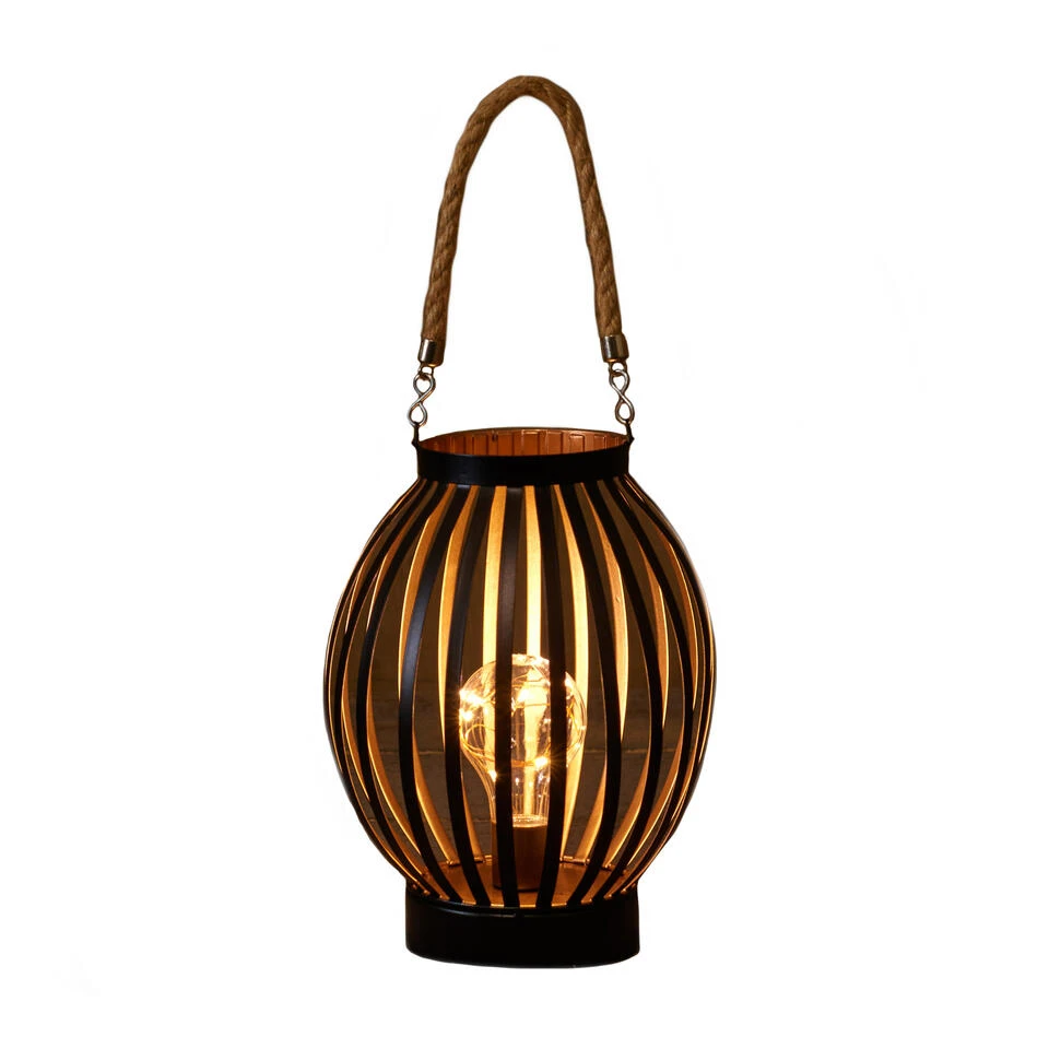 Led sfeer lantaarn/lamp zwart/goud rond met timer B16 x H22 cm. Voeding: 3x AAA batterijen (niet inbegrepen). Timer: 6/18 uurs timer.