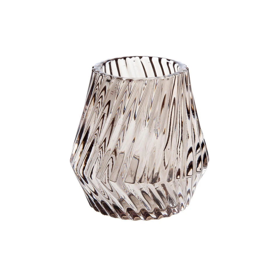 Ronde bruine theelichthouder / waxinelichthouder gemaakt van glas. Afmetingen: 9 x 9 x 9 cm. Geschikt voor theelichtjes / waxinelichtjes.