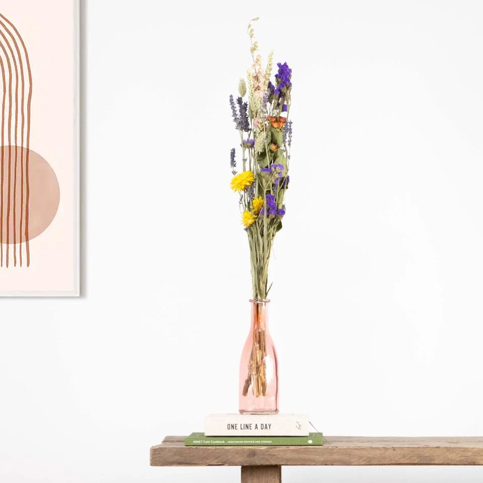 Droogbloemen die in een handomdraai jouw interieur opfleuren. Nu ook met het gemak in een vaas. Ideaal om te geven als cadeau, maar ook zeker leuk om jezelf cadeau te doen! Met dit veldboeket haal je de natuur van buiten naar binnen. De droogbloemen in dit boeket komen direct van het veld en worden op duurzame manier geteeld. Droogbloemen zijn een trend die wij bij Bloomique helemaal geweldig vinden: zo blijven de boeketten lang houdbaar en zijn ze ook nog eens onderhoudsvriendelijk. Wie wilt dit nou niet?