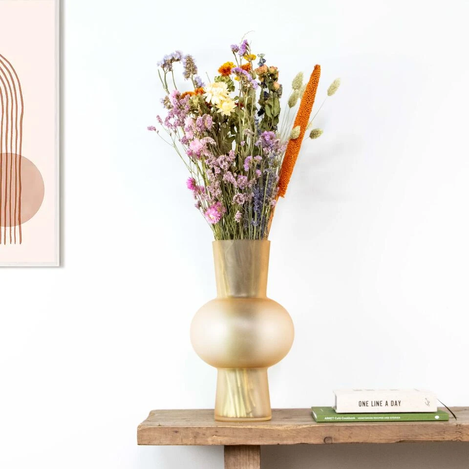 Droogbloemen die in een handomdraai jouw interieur opfleuren. Met dit meerkleurige veldboeket haal je de natuur van buiten naar binnen. De droogbloemen in dit boeket komen direct van het veld en worden op duurzame manier geteeld. Droogbloemen zijn een trend die wij bij Bloomique helemaal geweldig vinden: zo blijven de boeketten lang houdbaar en zijn ze ook nog eens onderhoudsvriendelijk! Naast dat de droogbloemen leuk zijn voor jouw interieur, zijn ze ook leuk om te geven. Wie wilt dit nou niet?