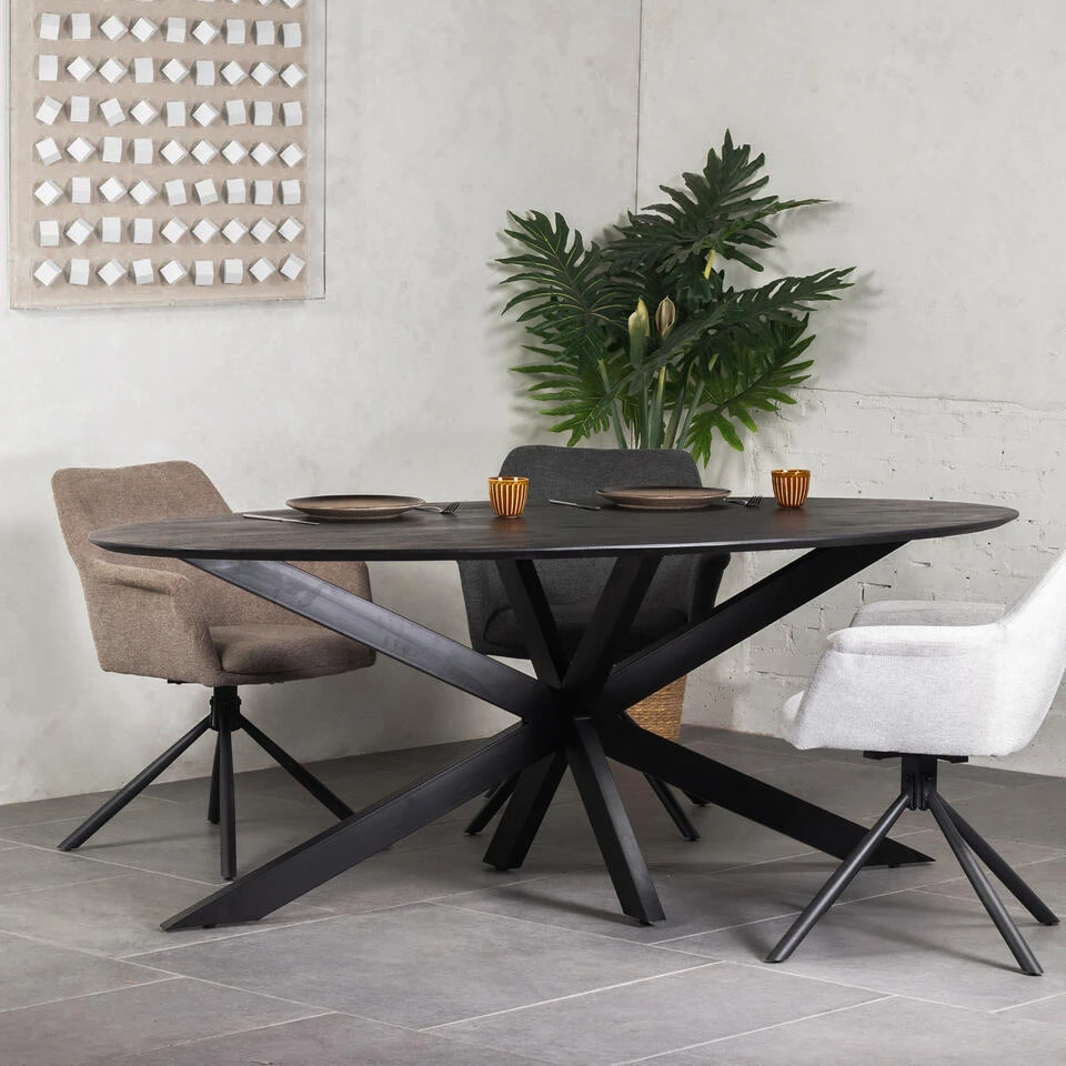 Giga Meubel Eettafel Ovaal Zwart 200cm – X-Poot – Tafel Ziggy