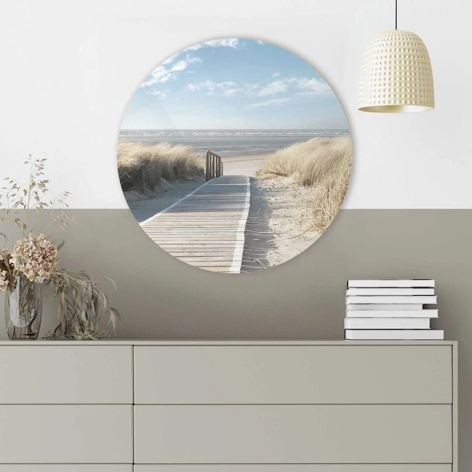 Print op 4mm dik ESG-veiligheidsglas, compleet met voorgemonteerde wandmontage en afstandhouders. De ronde vorm van de glasprint onderstreept op subtiele wijze het kenmerkende karakter van de afbeelding.Kenmerken