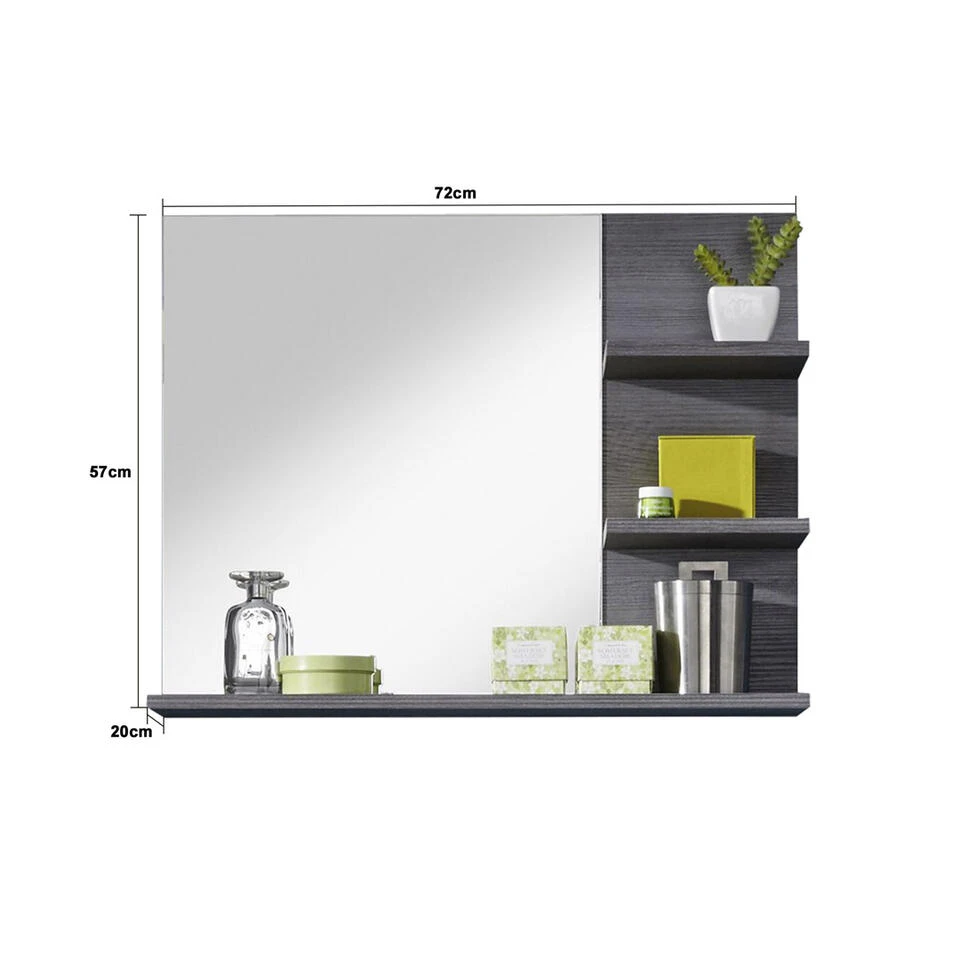Miami,MaineBad spiegel bad 3 open vakken rookzilver. 3 constructieplanken. Je ontvangt meubels van een goede kwaliteit met een aangenaam comfort, gemaakt in een stijlvol en mooi design. Onze meubels zijn zeer aantrekkelijk geprijsd. Creëer uw eigen persoonlijke stijl met een nieuw meubel. Combineer met kleinmeubels of een paar mooie woonaccessoires. Hier verkrijg je de nieuwe woningtrends, zoals je ze in tijdschriften en magazines ziet. Bij ons vindt u unieke, praktische en comfortabele meubels met elk zijn eigen, mooi en apart design.