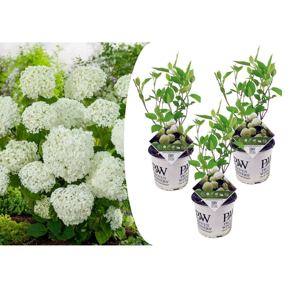 De Hydrangea arborescens Strong Annabelle is een mateloos populaire Hortensia met prachtige witte bloemen. Hydrangea Arborescens (latijnse naam voor Hortensia) komt oorspronkelijk uit Noord-Amerika en is een sterke, bladverliezende struik. De plant is zeer geliefd vanwege zijn spectaculaire witte bloemen die ongeveer net zo groot worden als een voetbal. De Strong Annabelle is een sterkere variant van de gewone Hortensia Annabelle en blijft bij regen en wind beter rechtop staan dankzij zijn stevigere stengels. De Strong Annabelle wordt ongeveer 120 tot 150 cm hoog en heeft een lange bloei van juli t/m september.