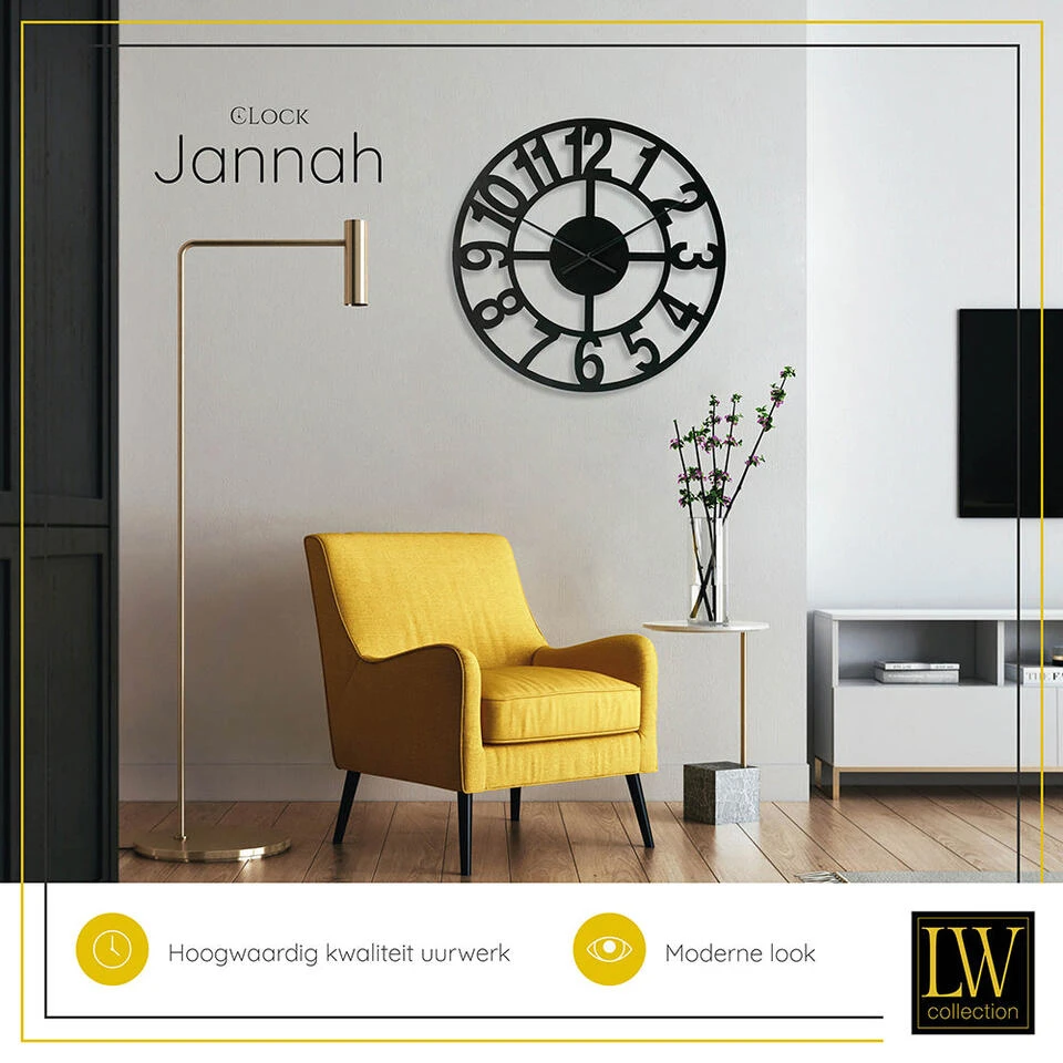Wandklok JANNAH is geen standaard klok die u in vele huishoudens zult treffen. Onze klanten die deze mooie klok in huis haalden zochten expliciet naar een exclusieve eyecatchende wandklok aan de muur.