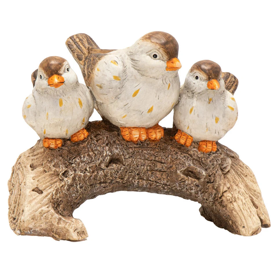Decoratie van 3 vogeltjes op tak – hout – beeldje – binnen/buiten – 35 x 20 x 28 cm. Dierenbeeldjes home decoraties. Meer sfeer in uw huis met vrolijke twitterende vogeltjes.