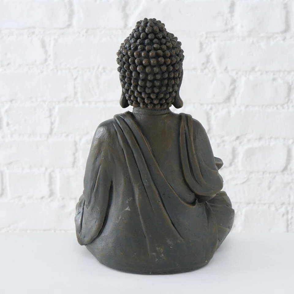 Zittend Boeddha beeld zwart zittend 30 cm. Dit zwarte boeddha decoratie beeldje is enkel geschikt voor binnenshuis. Afmeting: ca. 20 x 17 x 30 cm. Materiaal: polyresin (polystone).