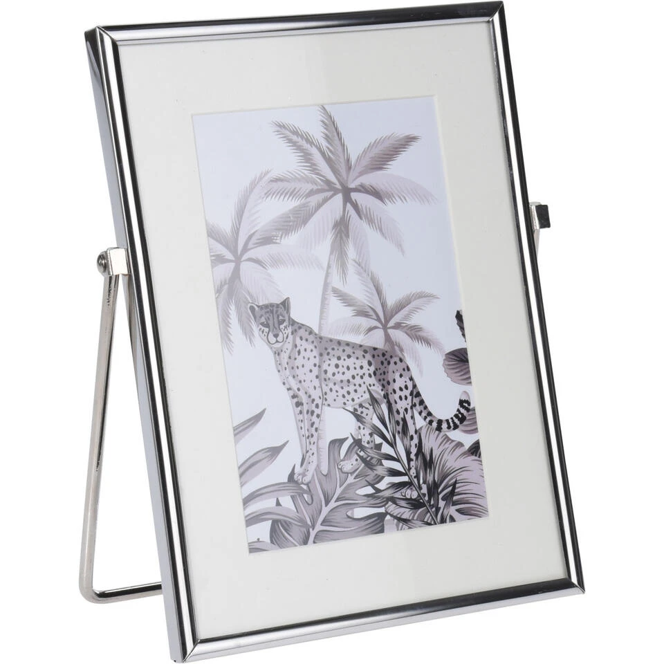 Fotolijst metaal zilver geschikt voor een foto van 15 x 20 cm. U kunt het fotolijstje staand presenteren, het lijstje is voorzien van standaard. Afmeting lijst: ca. 17 x 3 x 21 cm. Materiaal: metaal, glas.