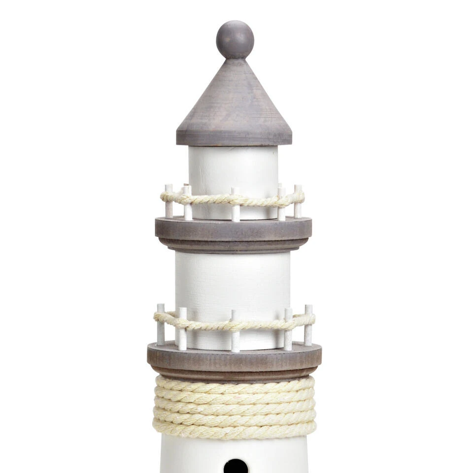 Merkloos Vuurtoren Beeldje – Hout – 12 X 48 Cm – Wit/grijs – Maritiem