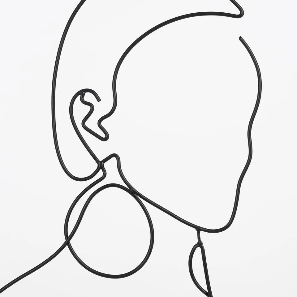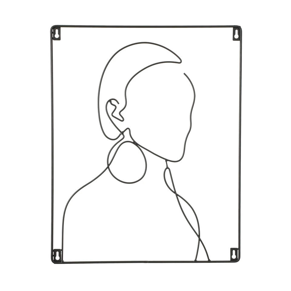 Maak een ruimte in huis helemaal af met deze prachtige Shade muurdecoratie van Mica Decorations. De muurdecoratie is gemaakt van zwart metaal en valt op door de abstracte lijnen die een vrouwenlichaam vormen. In haar oor zit ook nog een mooie grote oorbel. Erg stijlvol in een modern interieur! De metalen muurdecoratie is 40 cm lang en 50 cm hoog. Heb jij er al een mooie plek voor gevonden?