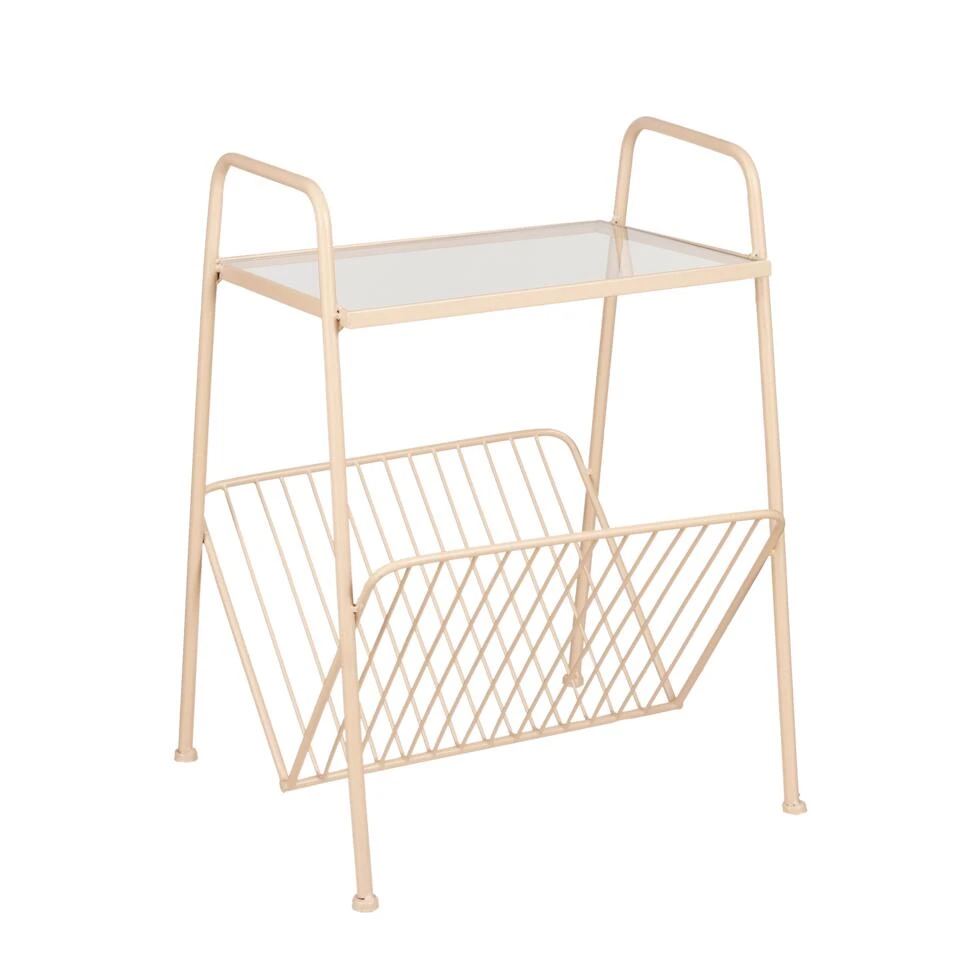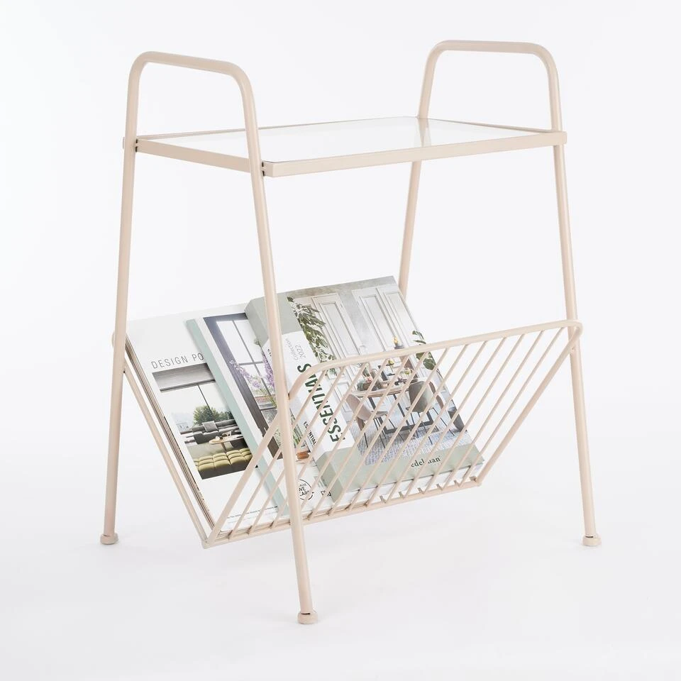 Dit Mica Decorations tijdschriftenrek is een perfecte combinatie om te gebruiken voor je favorieten bladen maar ook meteen om te gebruiken als bijzettafel. Met dit mooie strakke design van metaal met glas past dit rek perfect in een modern interieur. Het frame heeft een oudroze kleur. De afmetingen zijn L44,5 x B40 x H59 cm. Waar zet jij deze neer?