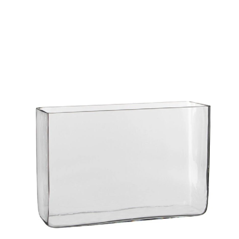 Hoge rechthoekige vaas/accubak, gemaakt van transparant glas. Deze glazen vaas is 30 x 10 x 20 cm. Deze vaas is zeer geschikt voor bijvoorbeeld bloemen en planten. Materiaal: glas. Glazen vazen/accubakken woonaccessoires/woondecoratie.