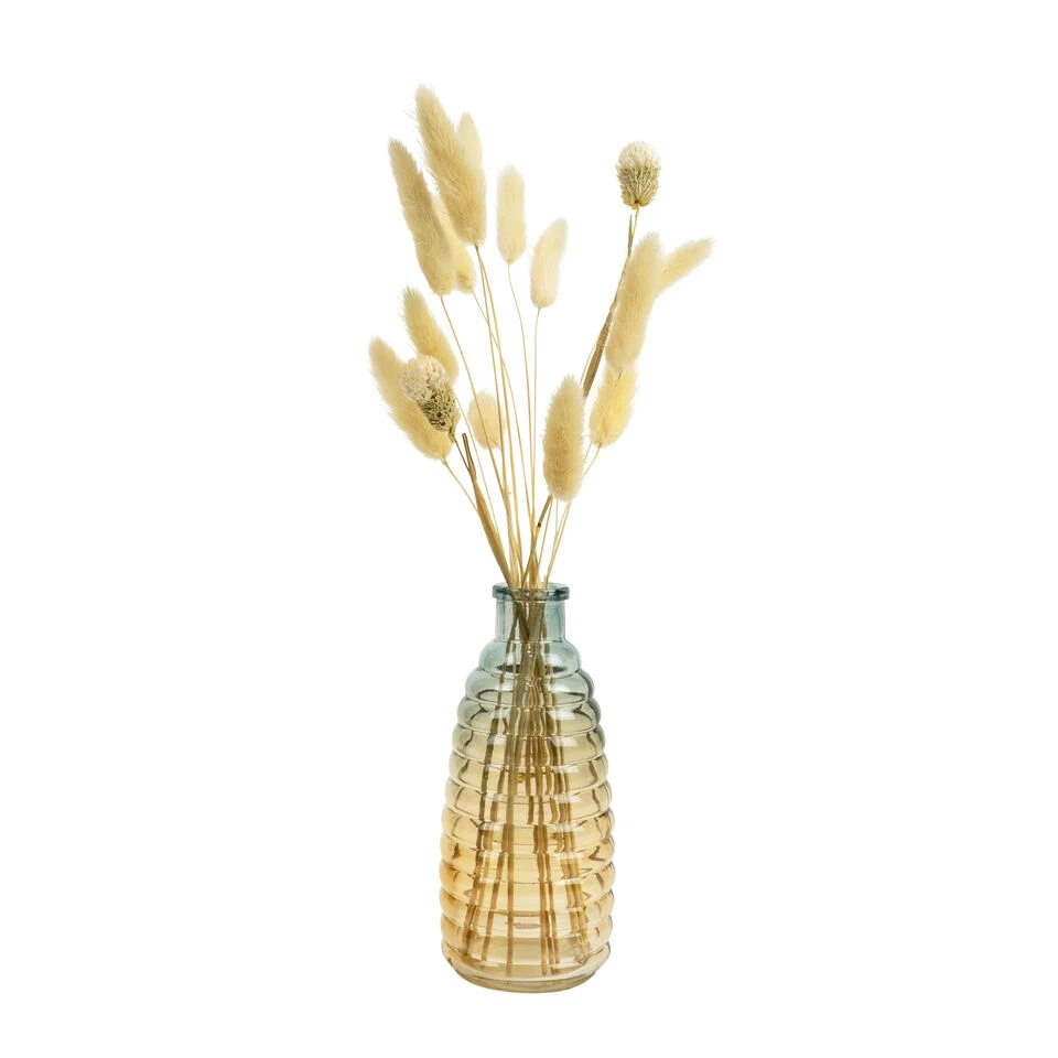 Krijg je wel eens bloemen cadeau of koop je voor jezelf? Dan is een glazen vaas een handig item om te hebben. Het vaasje heeft een subtiele kleurverloop van geel naar blauw en ziet er zelfs zonder bloemen leuk uit ter decoratie. De bloemenvaas heeft een patroon en in combinatie met de subtiele kleuren vrolijkt de vaas je ruimte op. De vaas is geschikt voor echte en neppe bloemen, maar staat dus ook leuk zonder bloemen.