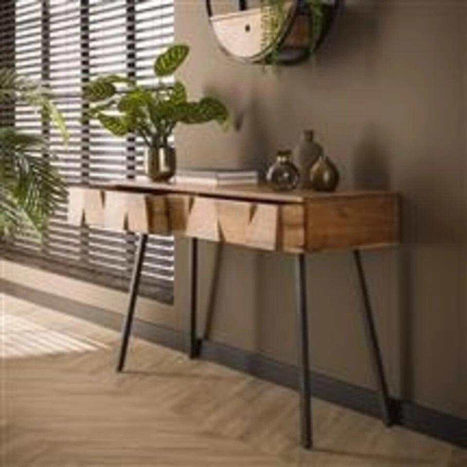 De industriële sidetable is gemaakt van acaciahout. Acacia is een bijzonder duurzame loofhoutsoort. Vooral de fijne nerf, de vlamtekening en de wisselende kleurschakeringen geven het meubel een degelijke en warme uitstraling. De combinatie van hout en metaal creëert het perfecte plaatje!