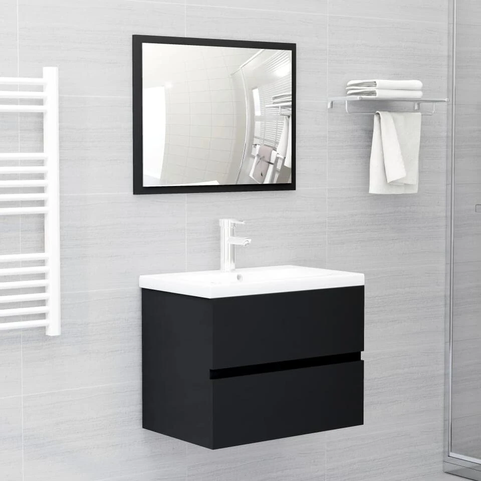 De meubelset, bestaande uit een spiegel en een kast, is gemaakt van duurzaam en stabiel spaanplaat. De chique kast is voorzien van 1 lade en biedt voldoende opbergruimte om spullen in je badkamer op te bergen. Het blad van de kast is ideaal voor het plaatsen van een wastafel. De spiegel geeft je interieur een prachtige uitstraling. Deze badkamerset is gemakkelijk schoon te maken met een vochtige doek.