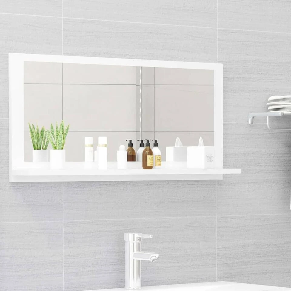 De wandspiegel is gemaakt van spaanplaat en acryl, waardoor hij duurzaam en stabiel is. Hij heeft 1 klein schap dat voldoende ruimte biedt om toiletartikelen, zoals zeep, shampoo en tandpasta, op te bergen. Bovendien is de spiegel gemakkelijk schoon te maken met een vochtige doek.