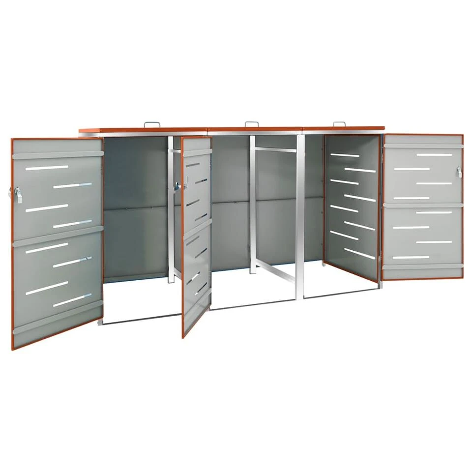 Deze vuilnisbakschuur is gemaakt van gegalvaniseerd stalen panelen en een roestvrijstalen frame, waardoor hij buitengewoon stevig en roestbestendig is. Het holle ontwerp zorgt voor luchtcirculatie en voorkomt nare geurtjes in de berging, en het vergrendelingssysteem zorgt voor een veilige opslagplek. Het handige deksel en de veren maken het gemakkelijk om de afvalbak te plaatsen en te verwijderen!