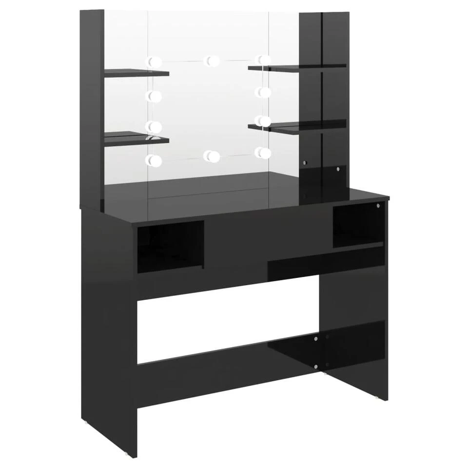Deze kaptafel, gemaakt van MDF, heeft een strak en beknopt silhouet met een moderne stijl. Hij biedt voldoende ruimte voor make-upartikelen en houdt alles op zijn plaats. Kaptafelspiegel: de prachtige spiegel biedt duidelijk zicht om je make-up aan te brengen en voegt een vleugje elegantie toe aan de kaptafel. De afgebeelde elegante LED-lampen verlichten ook je schoonheid.