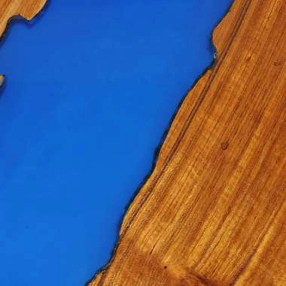 De stevige en duurzame wandtafel is gemaakt van hoogwaardig teakhout. Het tafelblad biedt een stabiel en stevig oppervlak waar je drankjes, vazen, fruitschalen en andere decoratieve spulletjes op kunt zetten. De blauwe harsrivier die door het midden van het tafelblad loopt geeft deze tafel zijn unieke uitstraling. Montage is eenvoudig.