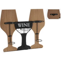 Excellent Houseware Wijnrek – Hout En Metaal – 3 Flessen – 35 Cm