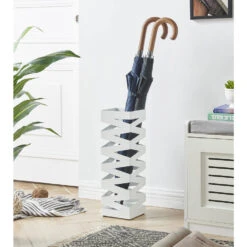 ACAZA Metalen Paraplubak, Bak Voor Paraplu’s Met Waterbakje, Metaal, Wit