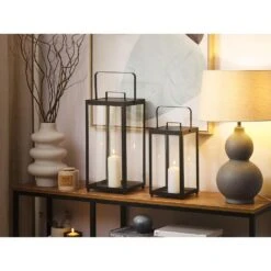 Bellatio Design Lantaarn – Zwart Met Goud – Timer – LED – 22 X 16 Cm