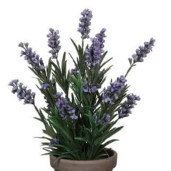 Merkloos Kunstplant Lavendel – Paars Met Groen – Lavandula – Grijze Pot – 33 Cm